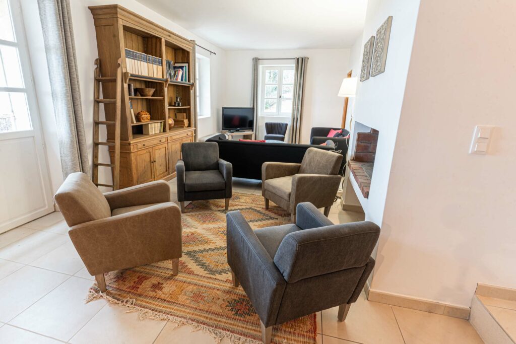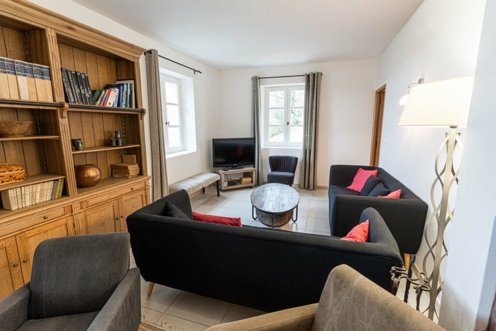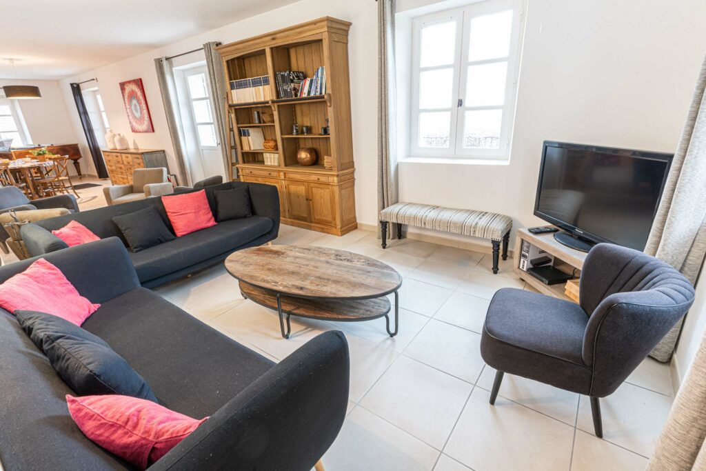 – Séjour / Salle à manger : canapés, TV écran plat, table basse, une table et ses chaises