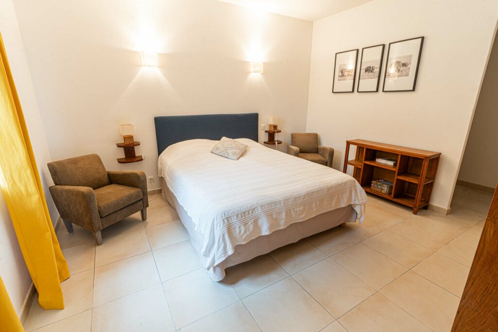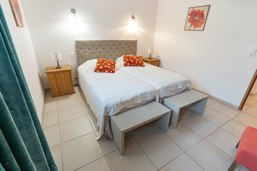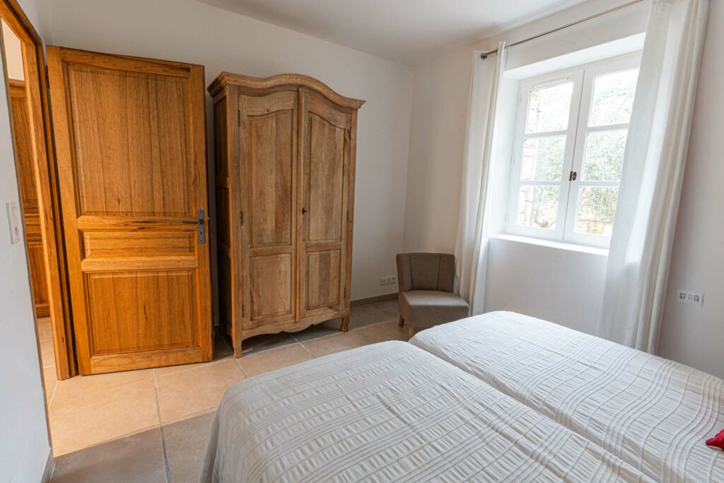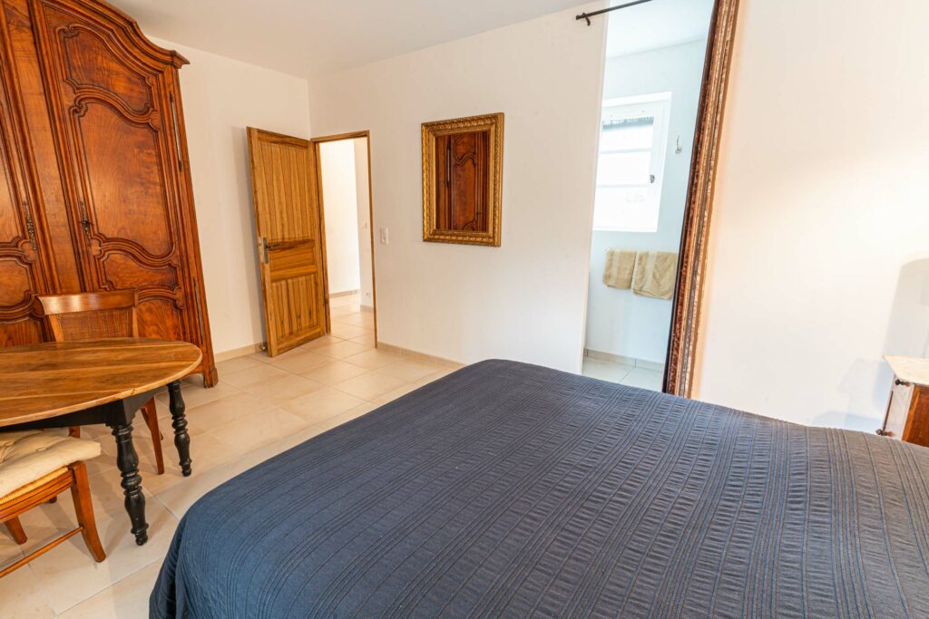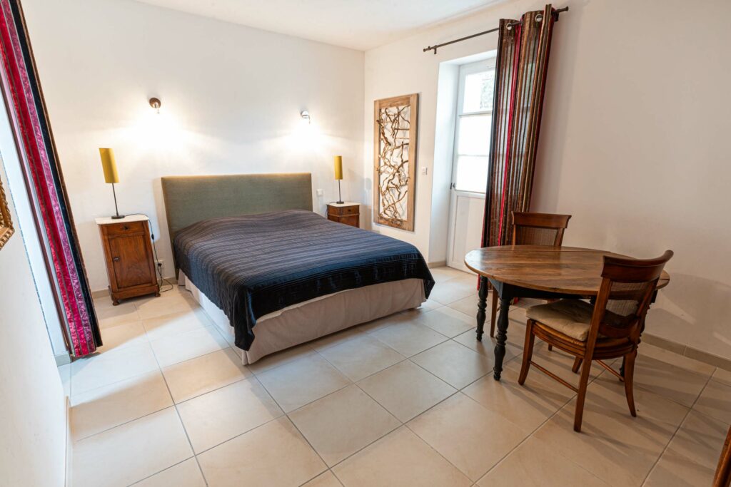 – 1 chambre, lit double en 160, avec petite terrasse et salle de bain privative”