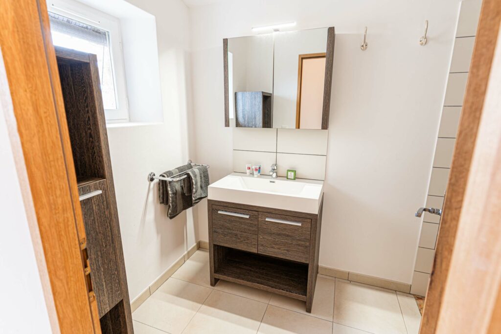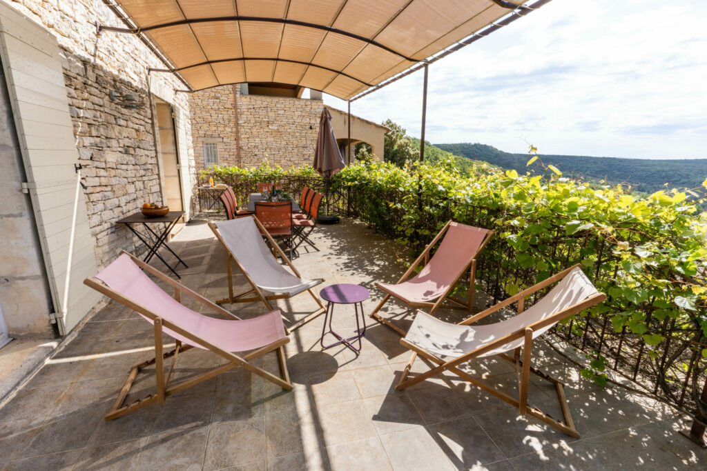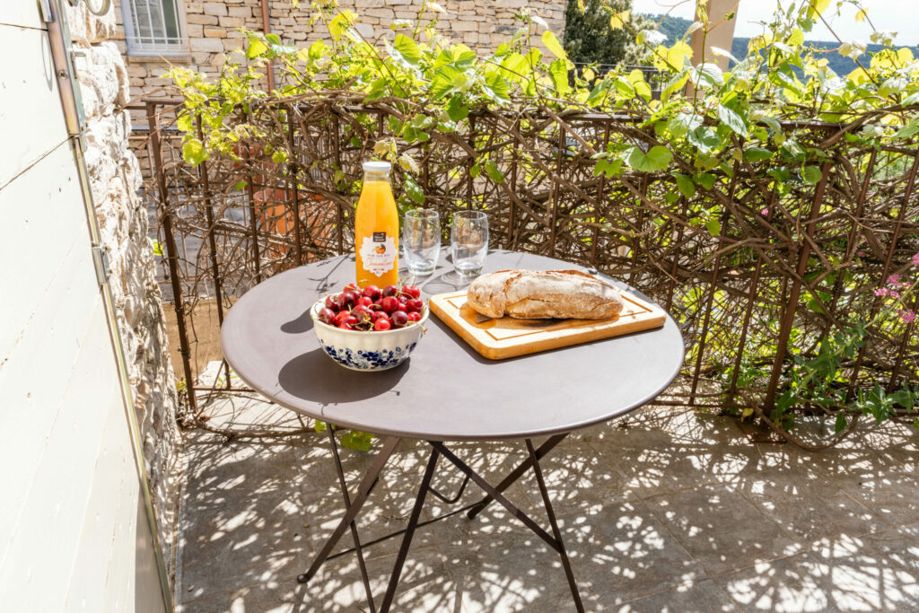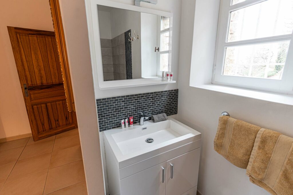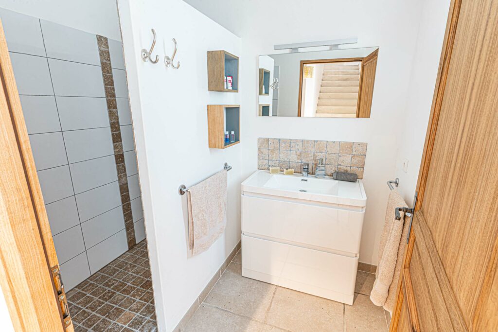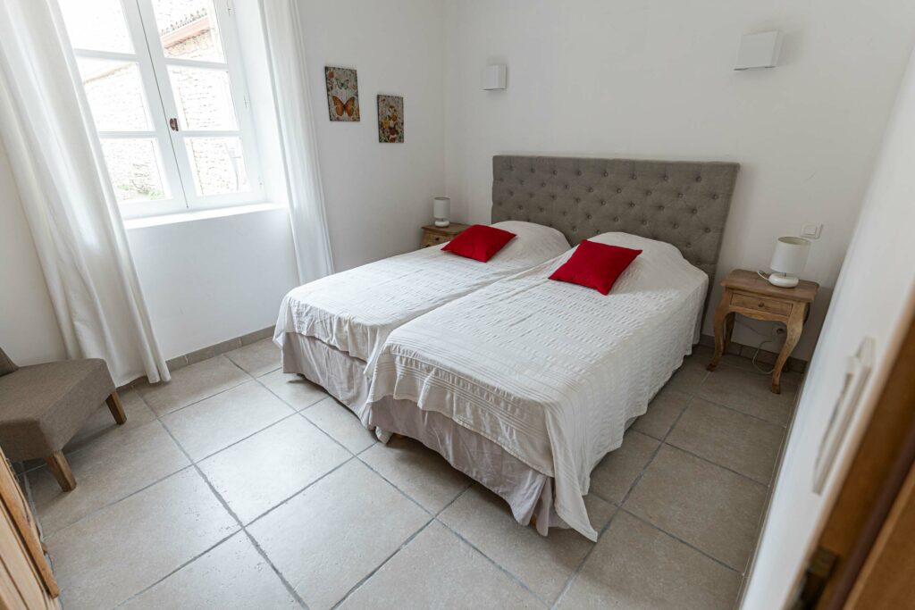 – 1 chambre, lit double en 160, avec petite terrasse et salle de bain privative”